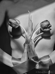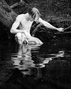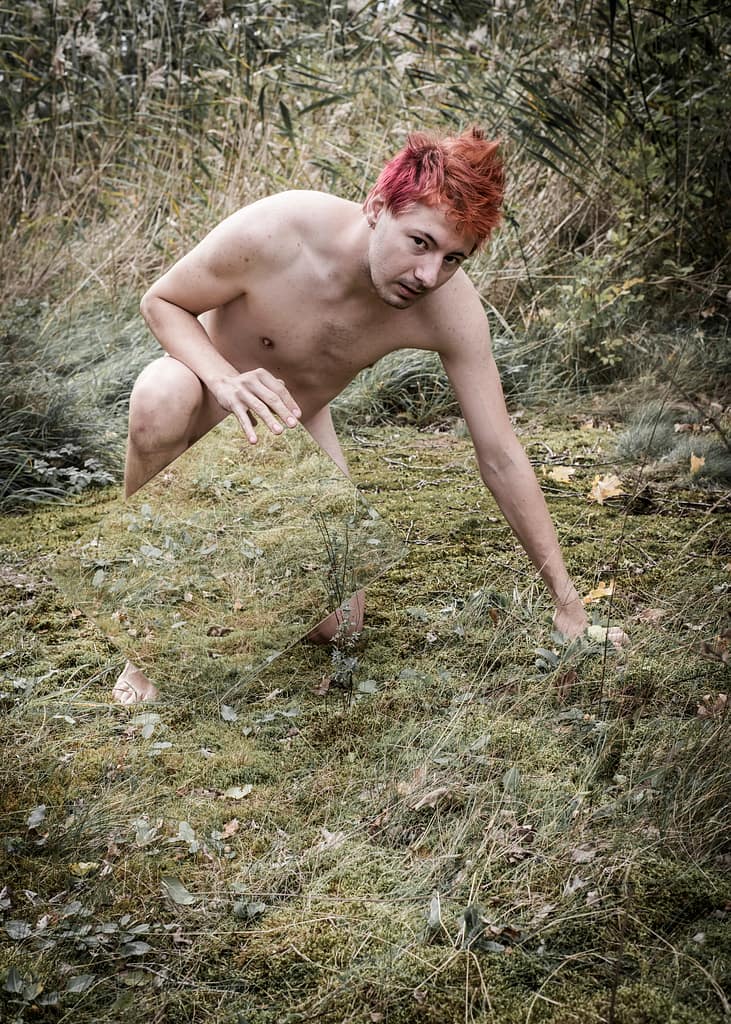 Här låter vi ett antal speglar i olika form och storlek vara en del av sessionen och skapa häftiga och fina illusioner. Fotograferar gärna naket men påklätt kan också bli fint.
